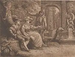 Cugoano, rechts, und das Ehepaar Cosway auf einem Stich von Richard Cosway (1784)