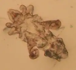 Mikroskopisches Bild einer Räudemilbe des gleichen Tieres