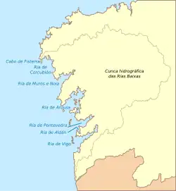 Die Rías Baixas reichen vom Kap Finisterre (galizisch Cabo Fisterra) bis zur portugiesischen Grenze. Im Gegensatz zu den Rías Altas (= „Obere Rías“) im nördlichen Galicien weisen die Meeresbuchten der Rías Baixas flachere Küstenverläufe und geringere Meerestiefen auf.