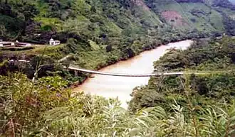 ![]() herunterhängende Brücke über den Río Yacuambi bei La Saquea | ||