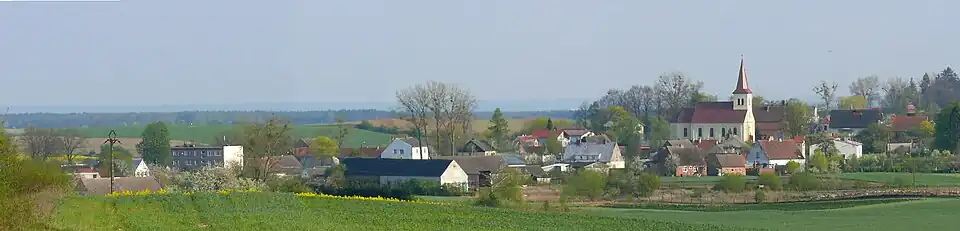 Die Katholiken hatten hier 1628 eine hölzerne Kirche.[1] Die bis 1945 anwesenden katholischen Dorfbewohner verfügten über eine eigene massive Pfarrkirche.