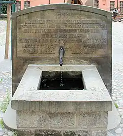 - In Gleiwitz wurde um die Mitte des 14. Jahrhunderts, in dem die mittelalterliche Stadt ihren wirtschaftlichen Höhepunkt erreichte, in einer mehrere Kilometer langen Rohrleitung aus dem Richtersdorfer Tal Wasser in die Stadt geleitet, das auf dem Markt in einem „Röhrkasten“ (heute Neptunsbrunnen) austrat.[5]