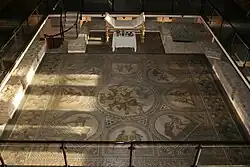 Bedeutendster Teil der Ausstellung sind die beiden Mosaiken, die sich nicht mehr in Originallage, sondern witterungsgeschützt zentral im Museumsgebäude befinden.