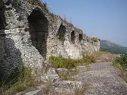 Um 100 v. Chr. herum entstanden in Latium mehrere auf Bergplateaus oder an Bergabhängen gelegene Heiligtümer. Unter diesen architektonisch meist bescheidenen Objekten repräsentiert die spätrepublikanische Terrassenanlage des Heiligtums der Fortuna Primigenia in Praeneste (heute: Palestrina) den Ansatzpunkt einer spezifisch römischen Monumentalarchitektur.[5] Ein alter Kern wurde prachtvoll zu einer axialsymmetrischen Anlage mit sieben künstlichen Terrassen ausgebaut, und zwar in einer Verbindung einheimisch-italischer (Podiumstempel) und hellenistischer Bauformen (Säulenhallen, Freitreppen).