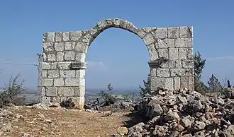 An der Übergangsstelle in den waagrechten Verlauf steht ein schlichtes Tor. Seine lichte Weite beträgt 4,11 Meter, die Bogenhöhe 5,20 Meter. Es hat eine Gesamtbreite von 8,80 Metern, die Pfeiler sind etwa 2,35 Meter breit und 1,00 Meter tief. Das Bauwerk besteht aus einfach bearbeiteten Quadern aus Kalkstein von unterschiedlicher Größe. Durch die mangelhafte handwerkliche Qualität der Verarbeitung lässt sich eine Datierung in die klassische Römische Kaiserzeit ausschließen. Dies wird bestätigt durch die Tatsache, dass die Durchlassbreite für eine Quadriga zu gering ist. Spuren eines Vorgängerbaus sind in der näheren Umgebung nicht zu erkennen. Daher kann es sich nicht um einen kaiserlichen Triumphbogen handeln. Der deutsche Byzantinist Hansgerd Hellenkemper nimmt an, dass das Tor von Bewohnern eines früheren Ortes bei Sağlıklı oder einem Grundeigentümer in Eigeninitiative an der Stelle errichtet wurde, an der die Straße von Norden von der Kilikischen Pforte kommend den Ausblick auf die kilikische Landschaft eröffnet. In Sağlıklı sind in einigen Häusern Spolien aus spätrömisch-frühbyzantinischer Zeit zu beobachten. Als Entstehungszeit nimmt er frühestens das 4., wahrscheinlicher das 5. bis 6. Jahrhundert an.
