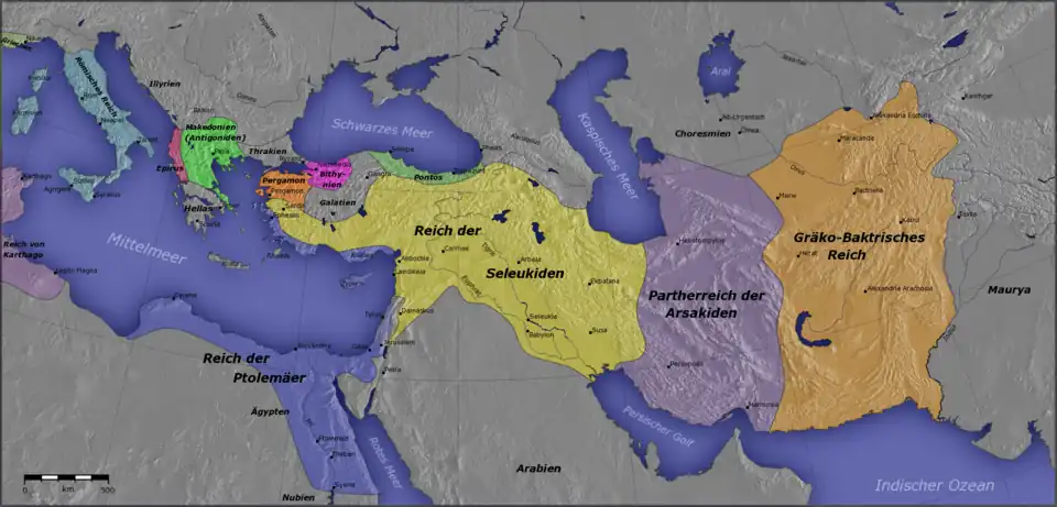 Pergamon wurde durch Erbvertrag 133 v. Chr. zur römischen Provinz. Gleichen Status erhielt 64/63 v. Chr. das Restreich der Seleukiden, das nicht mehr lebensfähig war und von Pompeius, der eine Neuordnung des Ostens vornahm, zur Provinz Syria gemacht wurde. Nur das schwächelnde Ägypten der Ptolemäer, welches zu einem römischen Protektorat wurde, behielt seine Unabhängigkeit, ehe es im Jahre 30 v. Chr. ebenfalls im Römischen Reich aufging. An der Grenze des Partherreiches kam die römische Expansion zum Stehen, hier sollte Rom in den nächsten Jahrhunderten einen ebenbürtigen Gegner gefunden haben (siehe auch Partherkriege).