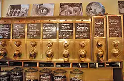 Zum Arabischen Coffe Baum ist das älteste ursprüngliche Kaffeehaus Deutschlands, das nach über 300 Jahren noch immer in Betrieb ist. Es eröffnete 1711 in einem Bürgerhaus aus dem 16. Jahrhundert in der Leipziger Innenstadt. Im oberen Stockwerk befindet sich ein Kaffeemuseum.[44] Das Portalrelief mit dem Turban tragenden Kaffeetrinker zeigt, wie exotisch ein Café damals noch war.