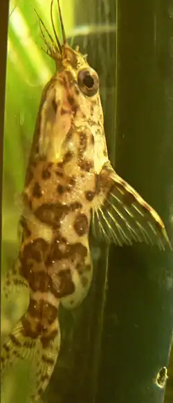 Die Eiablage erfolgt an besonders geschützten, dunklen Stellen des Gewässers, wo die bis zu 450 Eier an Substrat aufgeklebt werden. Nach etwa einer Woche schlüpfen die Jungfische[1], den Dottersack verlieren die Jungfische nach etwa vier Tagen. Die ersten Wochen schwimmen sie noch in der für die meisten Welse üblichen Lage und erst nach etwa sieben Wochen gehen sie in die arttypische Rückenlage über.