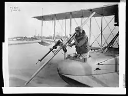 Bereits kurz vor dem Ersten Weltkrieg entwickelte Cleland Davis bei der US-Marine die Davis’sche Gegenmassekanone. Die Treibladung wurde zwischen zwei Rohren eingebracht. In einem befand sich das eigentliche Geschoss, im anderen eine zum Geschoss gewichtsmäßig gleiche Gegenmasse, hergestellt aus einem Gemisch aus Fett und Flintenschrot. Die Motivation für die Entwicklung dieser Waffe war die militärische Nutzung als Flugzeugbewaffnung. Eine rückstoßfreie Waffe war naheliegend, weil die damals neuen Flugzeuge leicht und fragil waren. Tatsächlich wurden die Kanonen nur in einem sehr begrenzten Umfang als Flugzeugbewaffnung operativ eingesetzt.[11] Die Wirkung der Munition im Ziel war nicht zufriedenstellend. Varianten mit kleineren Kalibern waren zu wirkungsschwach, Varianten mit größeren Kaliber waren zu groß für die damaligen Flugzeuge.[12] Das Rohr der Waffe war mit bis zu 3 m unhandlich lang. Schließlich machten bessere Fliegerbomben und deren Abwurfsysteme die Davis-Kanone obsolet.[13]
