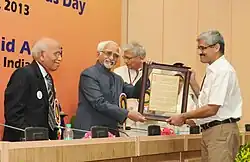 Vizepräsident Mohammad Hamid Ansari überreicht den Mahaveer Award an Ravi Kannan R (2013)