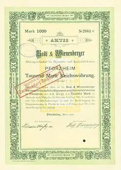 Am 15. Oktober 1885 eröffneten Eugen Rodi und Wilhelm Wienenberger in Pforzheim, in einem Fabrikgelände mit vier Beschäftigten eine Fabrik für Bijouterie. Im Jahr 1888 stellten sie auf die Produktion von Doublé-Artikeln um (mit Edelmetallbeschichtungen veredelte Metallwaren). Die ersten größeren Geschäftsräume wurden 1890 bezogen. Das Unternehmen florierte, beschäftigte 1890 80 Mitarbeiter und stieg schrittweise auf bereits 350 Mitarbeiter Ende 1899. Im Jahre 1894 zog die Firma in ein neu errichtetes Fabrikgebäude um und beschäftigte ca. 700 Mitarbeiter. Im Jahre 1899 wurde die Firma in eine Aktiengesellschaft mit einem Kapital von 500.000 Mark umgewandelt. Ein Jahr später ging der Firmenmitbegründer Eugen Rodi in den Ruhestand und die Gesamtleitung wurde an Wilhelm Wienenberger übergeben. 1902 wurde das Firmengebäude um ein Stockwerk erweitert, im Jahre 1906 wurde ein Erweiterungsbau angebaut und 1910/11 schließlich ein neues fünfstöckiges Fabrikgebäude errichtet.