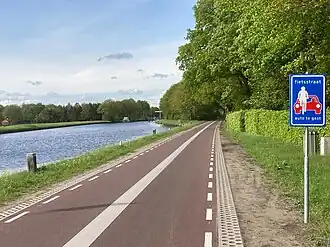 Eine reine Fahrradroute, die für das Radfahren über längere Strecken aus praktischen Gründen wie Pendeln oder für Sport und Bewegung gedacht ist, kann entweder als Snelfietsroute (Schnellradroute) oder als Fietssnelweg (Fahrradbahn) bezeichnet werden.[38] Einige Merkmale dieser Fahrradrouten, die von der Verwaltung (sowohl auf nationaler als auch auf lokaler Ebene) und Verkehrsexperten genannt werden, sind Zweirichtungsradwege mit einer empfohlenen Fahrbahnbreite von 2 Metern in einer Richtung und einer Mindestbreite von 1,5 Metern; sehr ebene und gerade Strecken (d. h. wenige Steigungen und Gefälle, Kurven oder Abbiegungen); das Fehlen von Ampeln und ebenerdigen Kreuzungen mit motorisiertem Verkehr sowie eine hohe Qualität der Straßenbeläge.[39]
