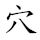 Die Siegelschrift-Form dieses Schriftzeichens lässt einen Raum (Erdeingang) erkennen, dem die Darstellung zweier Fenster oder Öffnungen hinzugefügt ist. Als Zeichenkomponente wird 穴 häufig als (Schatzdeckel) beschrieben.