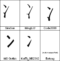 Im Unicodeblock Kangxi-Radikale ist das Radikal 15 unter der Codepointnummer 12.046 (U+2F0E) codiert.