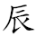 辱 (= Schande) trug links ursprünglich die Komponente 耒 plus 辰, plus 寸, eine Form der Hand. Die Hand führt hier ein landwirtschaftliches Gerät. Für die Verschriftung des fünften Himmelsstammes wurde 辰 (chen) als Leihzeichen herangezogen. Als Komponente in zusammengesetzten Zeichen fungiert es meist als Lautträger wie in 宸 (chen = großes Haus), 晨 (= Morgen), 振 (= flattern, schütteln), 赈 (= jemandem materiell unterstützen), 娠 (in: 妊娠 = schwanger), 蜃 (= Muschel) und auch 唇 (= Lippe).
