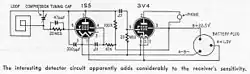 Die Tetrode 1S5, links im Schaltplan, demodulierte das hochfrequente Funksignal und die zweite Elektronenröhre 3V4, eine Triode, verstärkte das so gewonnene Audiosignal für den Kopfhörer. Die 1S5-Röhre fungierte als Superregenerativempfänger. Die Kopplung des Audiosignals von der 1S5 erfolgten über einen Widerstand an die 3V4 und durch einen Kondensator mit 330 pF im Kathodenkreis wurde eine Rückkopplung erzielt, so dass lokale Sender mit hoher Empfangsfeldstärke gut empfangen werden konnten.