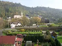 • Kirche des hl. Wenzel, das seit 1352 nachweisliche gotische Bauwerk wurde 1768 im spätbarocken Stil umgestaltet