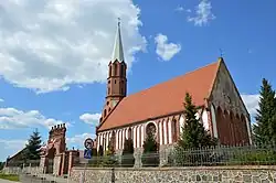 Im Ort befindet sich die Filialkirche Kościół Matki Boskiej Szkaplerznej, eine Maria-vom-Berg-Karmel-Kirche aus dem 13./14. Jahrhundert, die im 19. Jahrhundert umgebaut wurde. Sie steht, ebenso wie der anliegende ehemalige Friedhof und eine Mauer mit Tor aus dem 14. Jahrhundert, unter Denkmalschutz.[1]