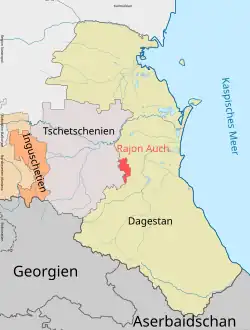 Der Rajon Auch (tschetschenisch Ӏовхойн кӀошт Owchojn kosht,[3] russisch Ауховский район Auchowski rajon) war eine administrativ-territoriale Einheit innerhalb der Dagestanischen Autonomen Sozialistischen Sowjetrepublik, gegründet im Oktober 1943. Er stellte das Gebiet einer kompakten Siedlungsstruktur der tschetschenischen Auch-Bevölkerung dar.[4]