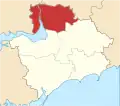 Auf kommunaler Ebene ist der Rajon in 17 Hromadas (2 Stadtgemeinden, 4 Siedlungsgemeinden und 11 Landgemeinden) unterteilt[3], denen jeweils einzelne Ortschaften untergeordnet sind.