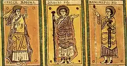 Links: Urraca Fernández; Mitte: Sancho II. von Navarra; Rechts: Ramiro von Viguera.