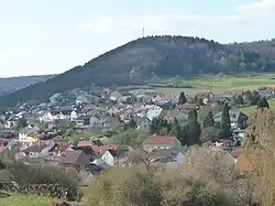 Im Süden der Gemarkung liegen die Nordflanke der 444 m ü. NHN messenden Hohen Bühl an der Grenze zu Wattenheim und weiter nordöstlich der 379 m ü. NHN hohe Lerchenkopf sowie der 362 m ü. NHN hohe Sandhübel. Weiter westlich befindet sich der 397 m ü. NHN hohe Eiskopf. Ganz im Westen an der Grenze zu Enkenbach-Alsenborn erstrecken sich der 358 m ü. NHN hohe Steinkopf und weiter südlich der 345 m ü. NHN hohe Stempelkopf. Im Gemarkungsdreieck zu Enkenbach-Alsenborn und Kerzenheim befindet sich der 353 m ü. NHN hohe Salweidenkopf. Unmittelbar südwestlich des Siedlungsgebiets erstreckt sich außerdem der Gänseberg und westlich der Lehrberg.