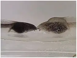 - ↑ Osamu Kishida & Kinya Nishimura: Multiple inducible defences against multiple predators in the anuran tadpole, Rana pirica. In: Evolutionary Ecology Research. Band 7, Nr. 4, Mai 2005 (englisch, hokudai.ac.jp).