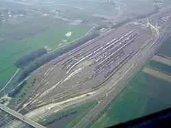Rangierbahnhof Kijfhoek im Jahr 2006. Die Betuweroute ist noch nicht ganz fertiggestellt. Im Vordergrund die Richtungsgleise