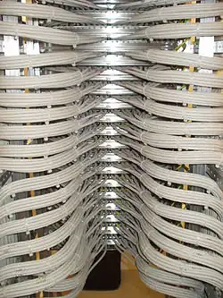 Einfaches, sauber aufgebautes Rangierfeld; Telekommunikations- und Datenleitungen sind farblich kodiert und so gut unterscheidbar