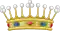 Moderne Königskrone | Die (moderne) Königskrone, die Württemberg und Sachsen einführten, zeigt einen goldenen edelsteinbesetzten Stirnreif mit fünf sichtbaren in der Bügelmitte mit Edelsteinen und am Bügelrand mit Perlen besetzten Bügeln. Der Raum unterhalb der Bügel ist leer. |