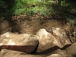 - imC: Das Ausgangsmaterial (C) ist massiv (m) und kalkarm bis kalkfrei (i = silikatisch; ≤ 2 Gew.% Kalk). Dabei kommen zahlreiche Gesteine wie Sandstein, Quarzit, Granit, Tonstein oder Schluffstein in Frage. Das Material ist weitgehend unverwittert.