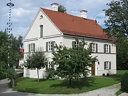 Das ehemalige Schulhaus wurde 1904 von Johann Baptist Schott in neubarocker Form mit Jugendstilmotiven gebaut.