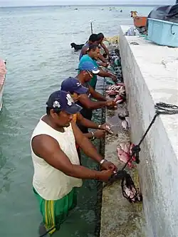 Die Einfahrt in die Lagune im Nordwesten teilt sich in drei Kanäle auf, die durch Untiefen voneinander getrennt sind. Der nördliche dieser Kanäle ist bis zu 6,4 m tief und kann von Schiffen bis zu 100 m Länge befahren werden. An der Ostseite des Atolls befindet sich Buschland, im Norden und Westen ist das Atoll mit Bäumen bewachsen, speziell in der Nähe einer Einfahrt und bis zu 5 km südlich davon. Im Inneren ist die Lagune bis zu 27 m tief. Hier wird auf den Korallenriffen Perlenzucht betrieben.