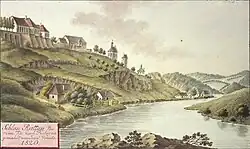 - Die Burg Pirkštejn wurde erstmals 1385 als „Pyrgenstein“ erwähnt. 1713–1724 wurde sie von den Kinský umgebaut und dient seither als Pfarrhaus.