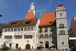 Als man Ende der 1880er Jahre das neue Bezirksamtsgebäude an der Bahnhofstraße in Betrieb nahm, überließ der Staat der Stadt wieder das gesamte Rathaus. Man brach in dieser Zeit auch die Mauer, die von der Südwestkante des Pfennigturms an die Südostkante des alten Rathauses stieß, ab. Diese bildete einen kleinen Vorhof zwischen Münsterstraße und Kaufhalle. Die Abbruchkante ist immer noch leicht an der Ecke des Pfennigturms zu erkennen. In der Mitte der 1950er gestaltete man das alte Rathaus erneut um. Den klassizistischen Giebelaufsatz entfernte man wieder und brachte an der Straßenfassade ein Naturstein-Mosaik von Hans Baumhauer an. Es stellt die Verleihung eines Marktprivilegs durch Kaiser Karl V. im Jahr 1547 an die damalige freie Reichsstadt dar. Bei den Arbeiten am älteren Rathaus legte man im zweiten und dritten Obergeschoss jeweils eine Fenstergalerie mit Renaissancegebälk bzw. gotischem Maßwerk, sowie das bis dahin verputzte Fachwerk am Westbau wieder frei. Durch diese Veränderungen bekam die Straßenfassade des alten Rathauses seine heutige spätmittelalterliche Aufmachung zur Hofstatt hin.