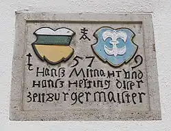An der Nordseite ist eine Steintafel mit dem Wappen der Stadt und dem Wappen der Landgrafen von Leuchtenberg angebracht. Unter der Jahreszahl 1579 stehen die Namen der Bürgermeister, Hans Mitnacht und Hans Hertig, unter denen das Bauwerk errichtet wurde. An der Südseite ist eine nahezu gleiche Steintafel angebracht, an der sich zusätzlich in der Mitte das Wappen der Landgräfin Mechthild geb. von der Mark sich befindet.