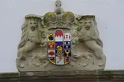 An der nördlichen Giebelfassade ist das Wappen des Würzburger Fürstbischofs Johann Philipp Franz von Schönborn zu sehen, datiert auf 1724.