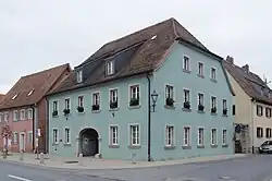 Der zweigeschossige Halbwalmdachbau mit korbbogiger Toreinfahrt besitzt sechs zu fünf Fensterachsen. Es diente lange Zeit auch als Dorfgefängnis.