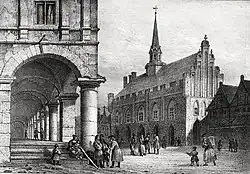 Vor dem Zweiten Weltkrieg schlossen sich direkt hinter dem Rathaus die Gebäudeensembles Hohe Lauben und Niederen Lauben an.