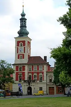 Das Rathaus in Slaný (deutsch Schlan), einer Stadt in der Mittelböhmischen Region (Středočeský kraj) in Tschechien, wurde 1902 erbaut. Das Rathaus auf dem Masaryk-Platz ist seit 1988 ein geschütztes Kulturdenkmal.[1]