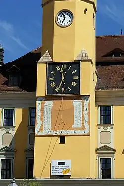 An der Südseite des Rathausturms ist rechts neben der obersten Uhr ein hervorspringender dunkler Stein zu sehen, der einen Türkenkopf mit Turban darstellt. Dieser wurde gemäß der Sage zur Erinnerung an die 1683 heranrückenden Truppen der Türken dort eingemauert, die jedoch bereits bei Wien im Zuge der Zweite Wiener Türkenbelagerung von den Heeren des sächsischen Kurfürsten Johann Georg III. und des Polenfürsten Johann III. Sobieski besiegt wurden.[1] Aus Furcht vor den heranrückenden Truppen der Türken hatten die Bürger der Stadt bereits in großer Eile die Mauern, Wälle und Tore ausgebessert, um für einen Kampf gerüstet zu sein.