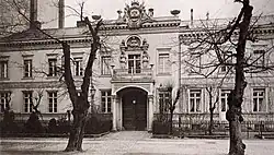 Im Jahr 1857 kaufte die Stadt das Palais des Oberhofstallmeisters Encke samt Grundstück für 19.300 Taler.[2] Es war 1791 für den Königlichen Oberstallmeister in der Berliner Straße 25 (später: Nr. 73, seit 1958 Otto-Suhr-Allee 96–98) erbaut worden. Im März 1902 fanden Bauarbeiter den Grundstein dieses Gebäudes, welcher aus einem viereckigen Sandstein bestand, in dem in einer Vertiefung eine Bleiplatte angebracht war. Sie trug folgende Inschrift: