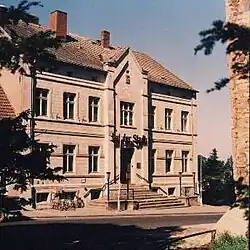 Die Einrichtung des Rathauses war ursprünglich bis 1945 so ausgerichtet, dass im Obergeschoss die Wohnung des Bürgermeisters mit allen entsprechenden Räumen war. Im Untergeschoss waren die Verwaltungsräume. Im Dachgeschoss befanden sich Lager- und Archivräume und im Kellergeschoss waren 3 Gefängniszellen, die kleine Wohnung des Polizeiwärters sowie weitere Archivräume.