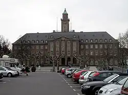 Am 13. Mai 1911 fand die feierliche Grundsteinlegung und schon am 4. November 1911 das Richtfest statt. Seit dem 1. Oktober 1912 zogen die ersten Ämter in das neue Rathaus, um dieses am 6. Dezember 1912 festlich einzuweihen. Zu diesem Anlass wurde dem ersten Bürgermeister Karl Büren der Titel eines Oberbürgermeisters verliehen.