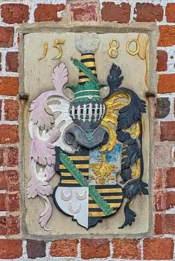 Das zweigeschossige zum Rathausplatz traufständige Gebäude in Backstein auf hohem korbbogig überwölbten Kellergeschoss und mit ziegelgedecktem Satteldach wurde 1583 als Rathaus gebaut. Der eingeschossige barocke nördliche Anbau in Fachwerk mit Steinausfachungen entstand 1685 (Inschrift). Er wurde 1994/95 im Innern saniert.