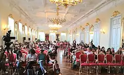 In das erste Obergeschoss führt eine doppelläufige Treppe, die an der Ostfassade zu einem Treppenabsatz führt, von dem aus drei Türen in den großen Saal des Hauses führen, der eine Fläche von 320 m² hat. Noch bis in die Mitte des 20. Jahrhunderts handelte es sich um den größten öffentlichen Saal der Insel Réunion. Die Decke des Saals ist prächtig im Stil von Ludwig XV. unter anderem mit Rosetten verziert und wurde von Florentin Chatel geschaffen. Die Gestaltung zeigt den Prunk in der Zeit der Herrschaft von Napoleon III. Auch die Stühle wurden im Stil Ludwigs XV. angeschafft. Die Möbel präsentieren sich im Stil Ludwigs XIV. Geliefert wurden die Möbel vom Möbelhändler Félix Madroll. Im Gebäude waren verschiedene kommunale Einrichtungen, aber auch eine öffentliche Bibliothek und die Handelskammer von Réunion untergebracht.