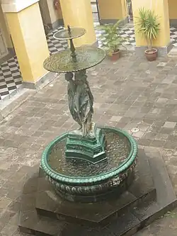 Der Grundriss ist U-förmig angelegt. Zum so gebildeten Innenhof besteht eine zweigeschossige Galerie. Im Zentrum des Innenhofs befindet sich ein Brunnen aus Eisenguss, der in der Ducel-Werkstatt hergestellt wurde. Im Brunnen befindet sich eine Skulpturengruppe. Die drei Frauen sind eine Reproduktion der bekannten drei Grazien aus der französischen Renaissance. Über ihnen befindet sich eine der Brunnenschalen.