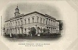 Der Bau dieses neuen Rathauses wurde ab 1843, in der Amtszeit von Amédée Bédier, geplant. Die Planungen erfolgten durch Pierre Émile Grenard, der auch die Baudurchführung betreute. Die Grundsteinlegung fand 1846 statt. Durch die politischen Umbrüche in der Zeit um 1848, inklusive der Abschaffung der Sklaverei, kam es zur Einstellung der Bauarbeiten. Sie wurden 1854 wieder aufgenommen und letztlich 1860 unter Jean-Baptiste Gilbert des Molières abgeschlossen. Das zweigeschossige Gebäude nimmt ein großes Viereck mit einer Kantenlänge von 37 Metern auf einer Fläche von ungefähr 1370 m² ein. Die zur Straße nach Osten ausgerichtete elfachsige Fassade ist reich unter anderem mit Säulen und Pilastern verziert. Oberhalb der mittleren Achse thront ein Glockenturm mitsamt Uhr.[1]