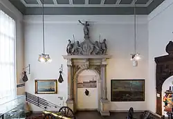 Das Hauptportal erhielt 1772 zwei Skulpturen und ein Wappen geschaffen von dem schwedischen Bildhauer Johann Wilhelm Manstadt.
