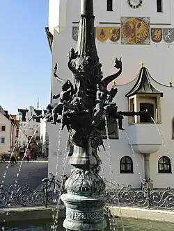 - ↑ Thomas Weiß, Franz-Rasso Böck (Hrsg.): In Bronze gegossen. Zur Geschichte des Kemptener Rathausbrunnens. 1. Auflage. Agrar-Verlag, Kempten 1993, ISBN 3-924809-15-1, S. 68.